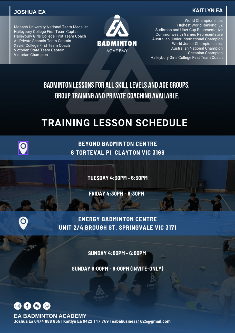 Tuesday 4:30-6:30 PM Beyond Badminton Centre, 6 Torteval PI, Clayton VIC 3168